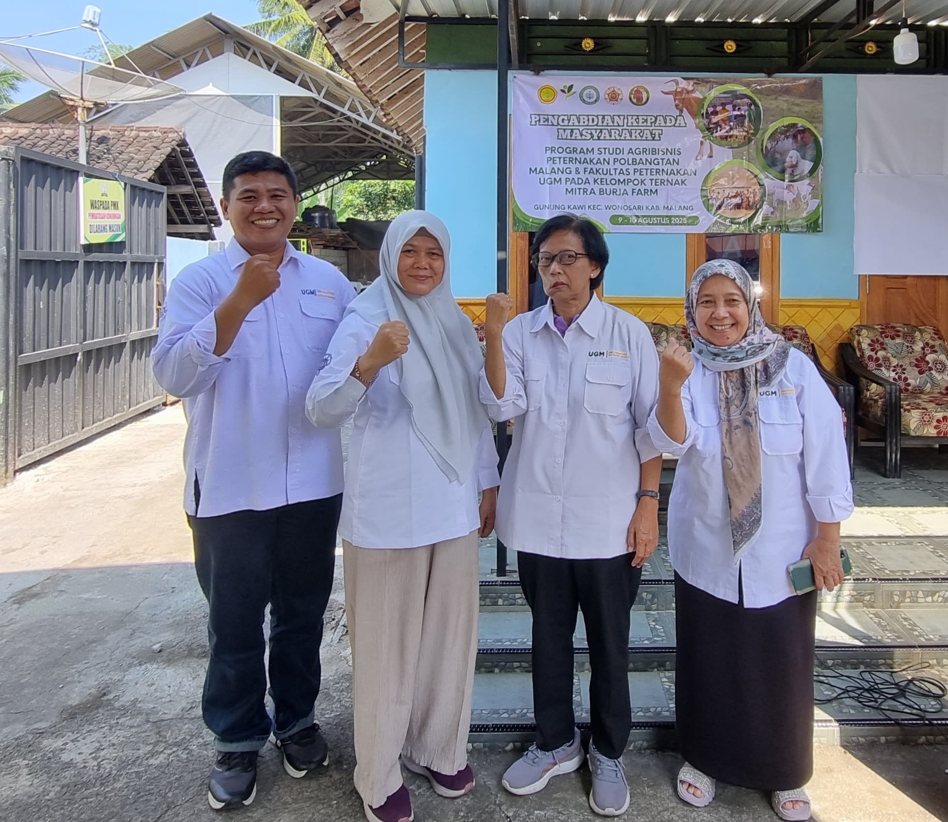Selain penelitian, tim gabungan ini juga melakukan kegiatan pengabdian kepada masyarakat di mitra ternak Joyo Setinggil, 9-10 Agustus 2025. Kegiatan dimulai dengan penyampaian materi Manajemen Produksi, Recording, dan OLahan susu Domba yang disampaikan oleh Prof. Ir. Yustina Yuni Suryanindiyah, M.S., Ph.D., IPM., Prof. Ir. Tety Hartatik, S.Pt., Ph.D., IPM., Prof. Dr. Ir. Nurliyani, M.S., IPM. dan Ir. Rochijan, S.Pt., M.Sc., IPM. Selanjutnya, materi pelatihan dari Tim Prodi Agribsinis Peternakan terkait Analisis Usaha yg dipandu oleh ketua tim kelompok Keilmuan Sosial Ekonomi, Dr. Siswoyo, serta Olahan Susu Domba dengan kandungan rempah yg diketuai oleh It. Luki Amar H., S.Pt., M.Sc.