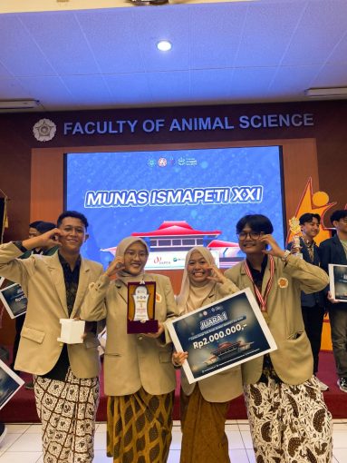 Mahasiswa Fakultas Peternakan Universitas Gadjah Mada (Fapet UGM) kembali menorehkan prestasi gemilang di tingkat nasional dengan meraih Juara 1 pada ajang Lomba Karya Tulis Ilmiah (LKTI) dalam Musyawarah Nasional Ikatan Senat Mahasiswa Peternakan Indonesia (ISMAPETI) XII 2026. Kompetisi yang dilaksanakan pada 31 Maret 2026 ini diikuti oleh puluhan tim dari berbagai perguruan tinggi di Indonesia, dengan total sekitar 97 full paper yang diseleksi pada tahap awal.